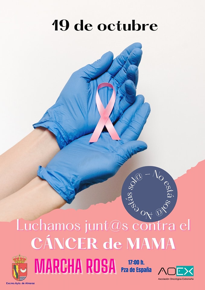 Recordamos que hoy 19 de octubre, tendrá lugar la Marcha contra el Cáncer de Mama con salida en parque blanco, junto al poblado, a las 17:00 horas.