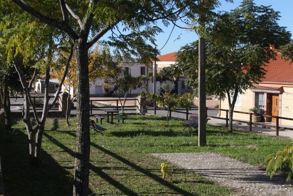 Es muy grande, ocupa una gran superficie en la salida hacia Trujillo, a lo largo de la carretera. Tiene mucho arbolado, cesped...