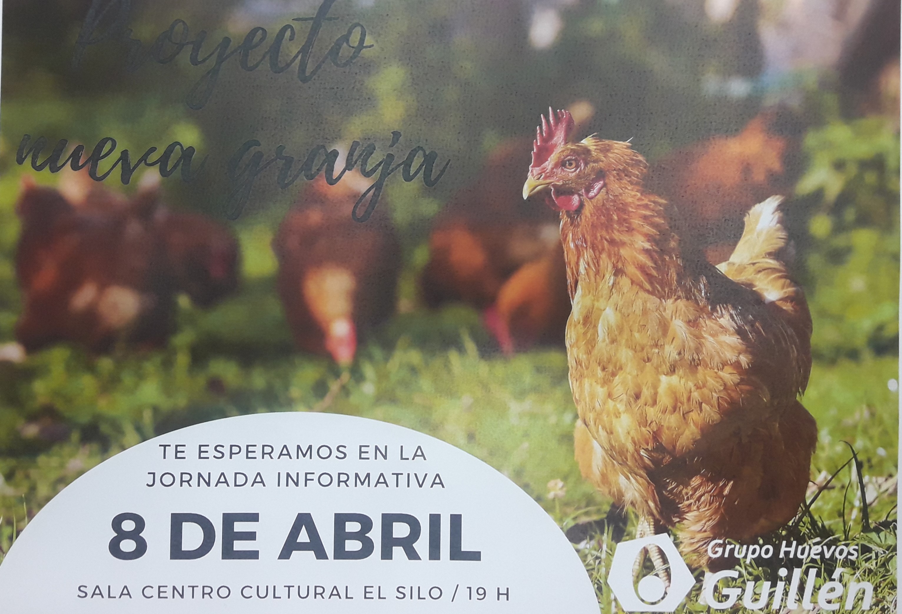 Buenos días, "Grupo Huevos Guillén" viene a nuestro municipio el día 8 de abril para llevar a cabo unas jornadas informativas sobre el desarrollo de nuestro nuevo proyecto "Granja de gallinas ecológicas", éste estará ubicado en la Dehesa Boyal.